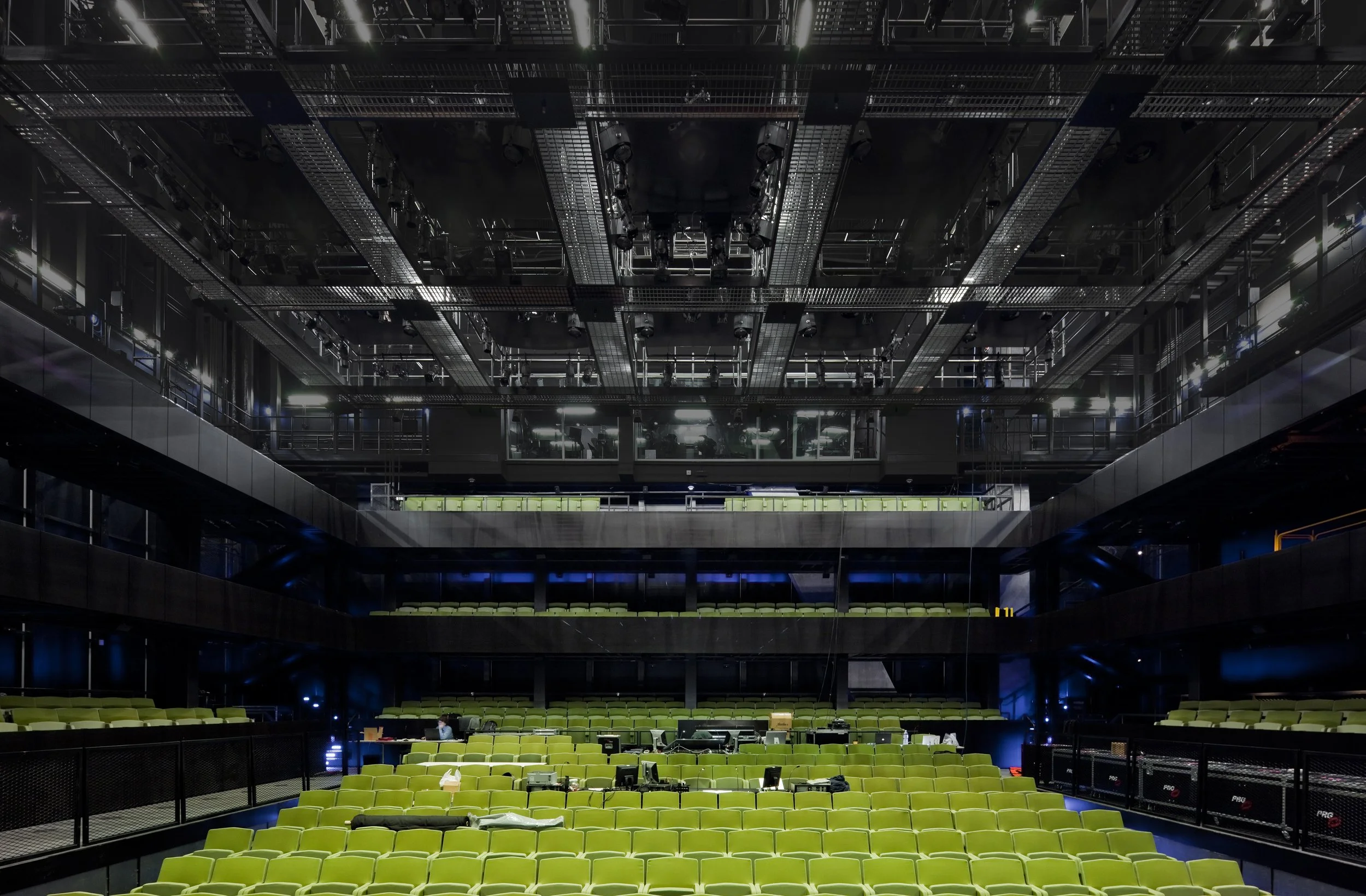 The project included the interior and exterior lighting for a theater building and a 20 acre park and plaza. The theater building features a unique design with vertically stacked back of house spaces allowing for pedestrian views into the theater as well as audience views of the surrounding outdoor park and plaza. The glass acoustic enclosure includes blackout blinds that have a faux curtain image silk-screened on the exterior face. These are washed with light from exterior fixtures concealed within the exterior aluminum tubes of the facade. TDA also worked on the lighting of the façade signage perforated into the aluminum facades and back-lit with light pipe. The raw interior spaces expose the building’s structure and the inner workings of the theatre with the light fixtures supporting this industrial aesthetic in their pure, simple forms.